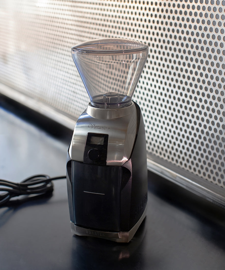 The Virtuoso Grinder is a high quality home electric grinder that will work for any brew method. 40 grind settings, 8 ounce bean hopper, commercial grade 40mm conical burrs, DC motor (6.0 amp max), and variable timer switch with front mounted pulse grind button.